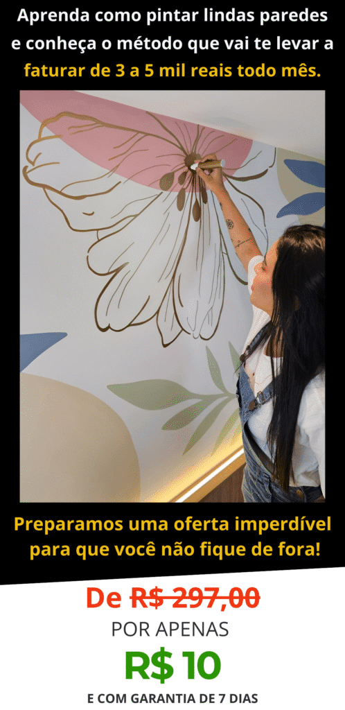 ✨ Imagine ver uma parede simples sem vida se transformar em uma obra de arte feita por você. Essa sensação não tem preço, e você vai viver isso nas suas primeiras criações!
